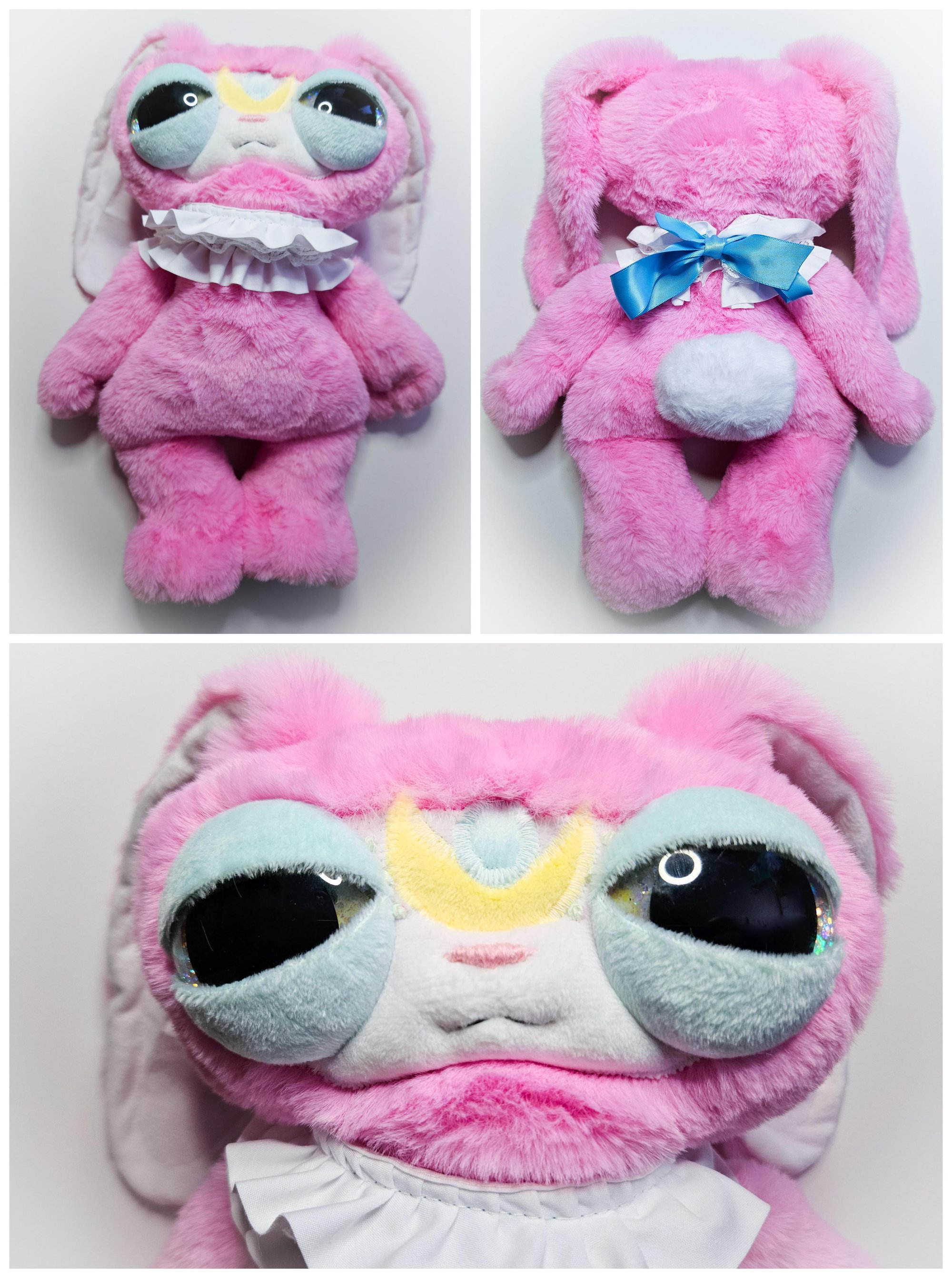 This is a one of a kind, original design, handmade art doll! Crafted with cuddle Minky and glow in the dark fabric. Stuffed with polyester stuffing and weighted with about 1/2lb glass microbeads! 14" from head to toe! Handpainted sparkle, glow in the dark, safety eyes used!